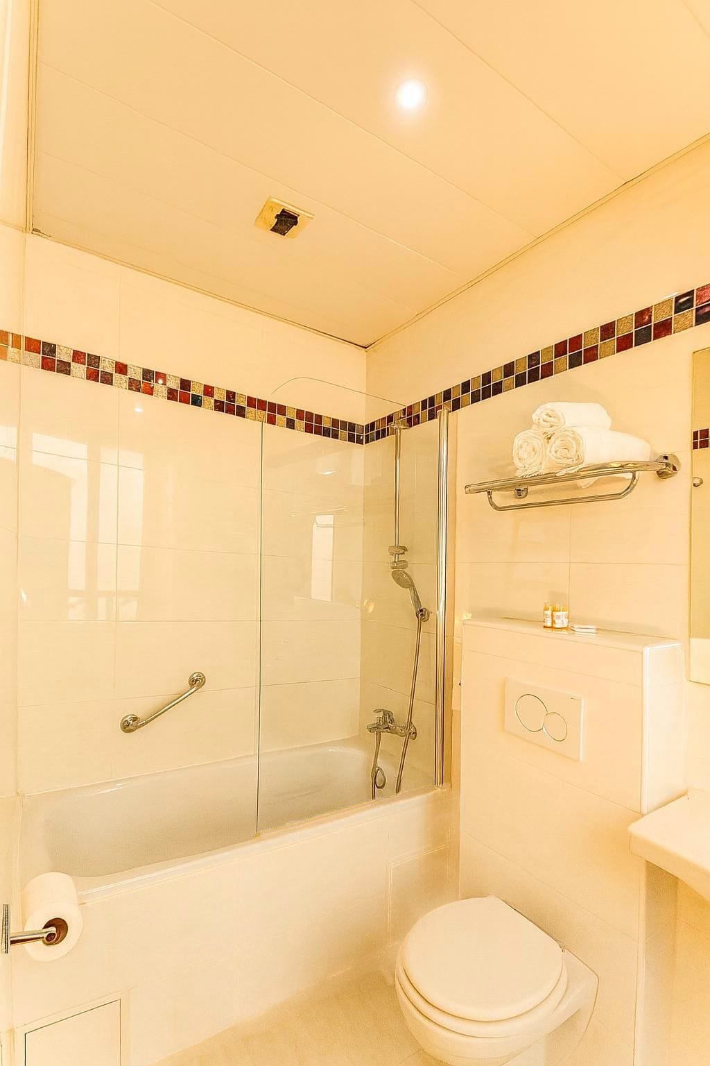 Its private bathroom, equipped with a shower and bathtub, promises moments of well-being, whether you’re returning from a day of exploration or simply choosing to relax.